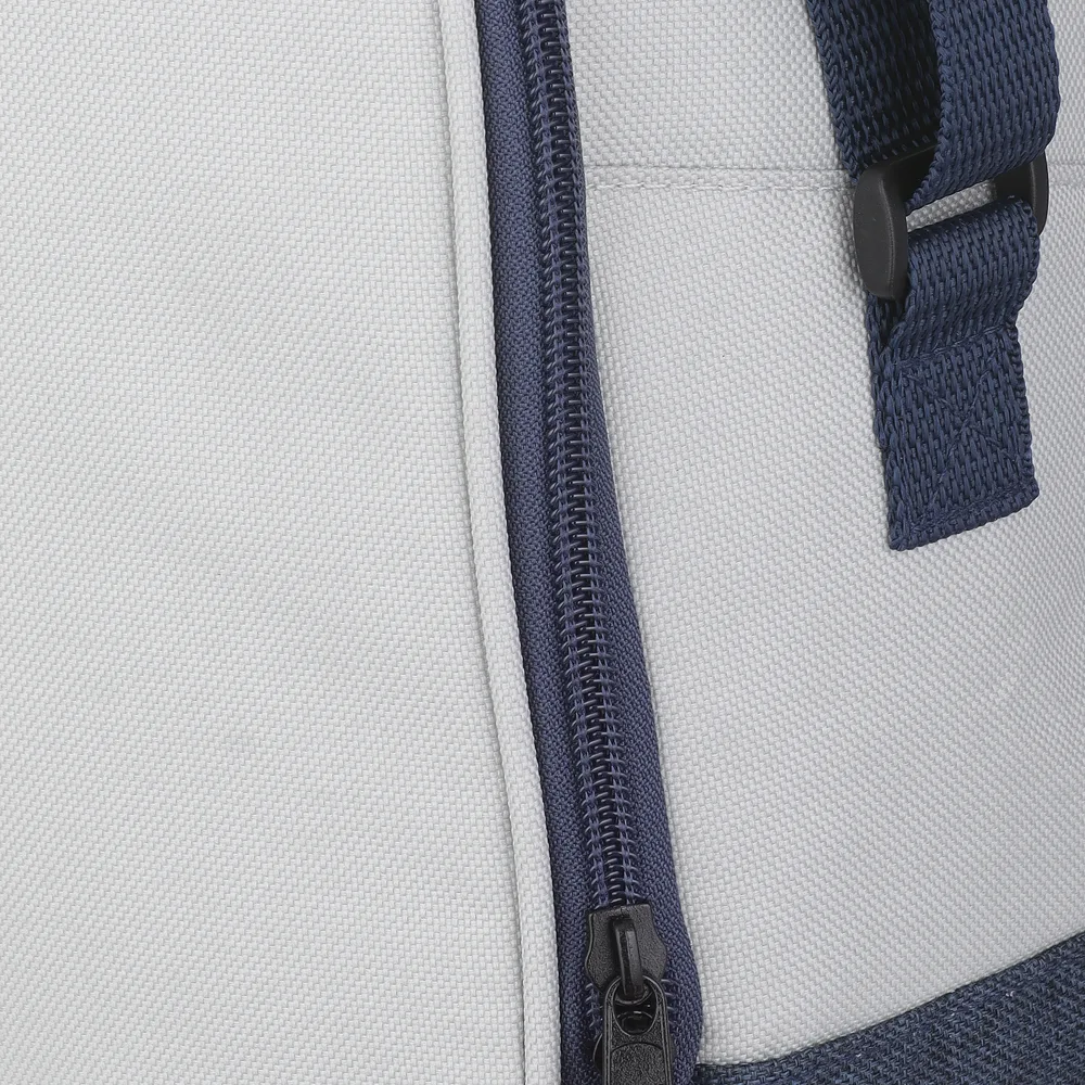 Bolsa térmica em tecido poliéster 600D com bolso frontal, argola plástica para chave e dois acessos ao compartimento interno. Possui alça de transporte com regulagem e parte interna soldada para melhor conservação térmica.