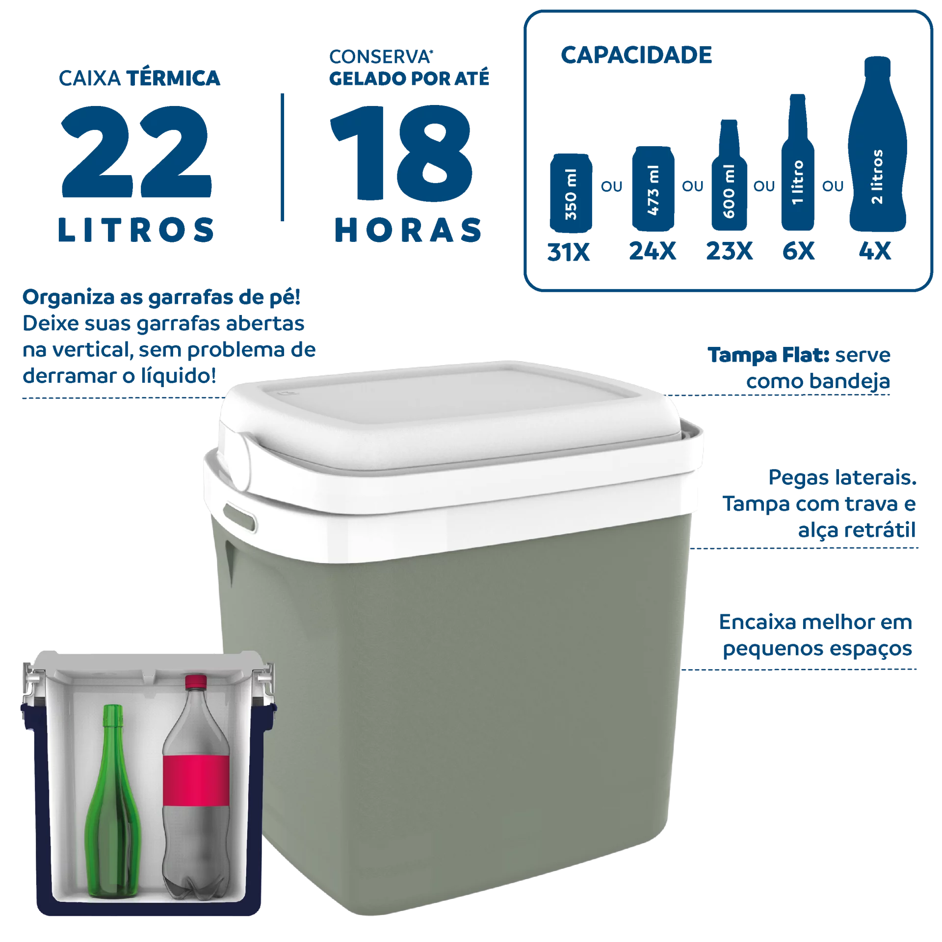 Eficiência térmica de até 18 horas (com 20% de gelo);