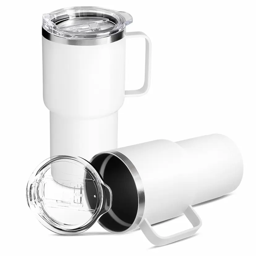 Caneca em aço inox com detalhe plástico colorido, alça na cor do produto. Pintura: corpo escovado, detalhe plástico com pintura fosca. Capacidade: 400ml