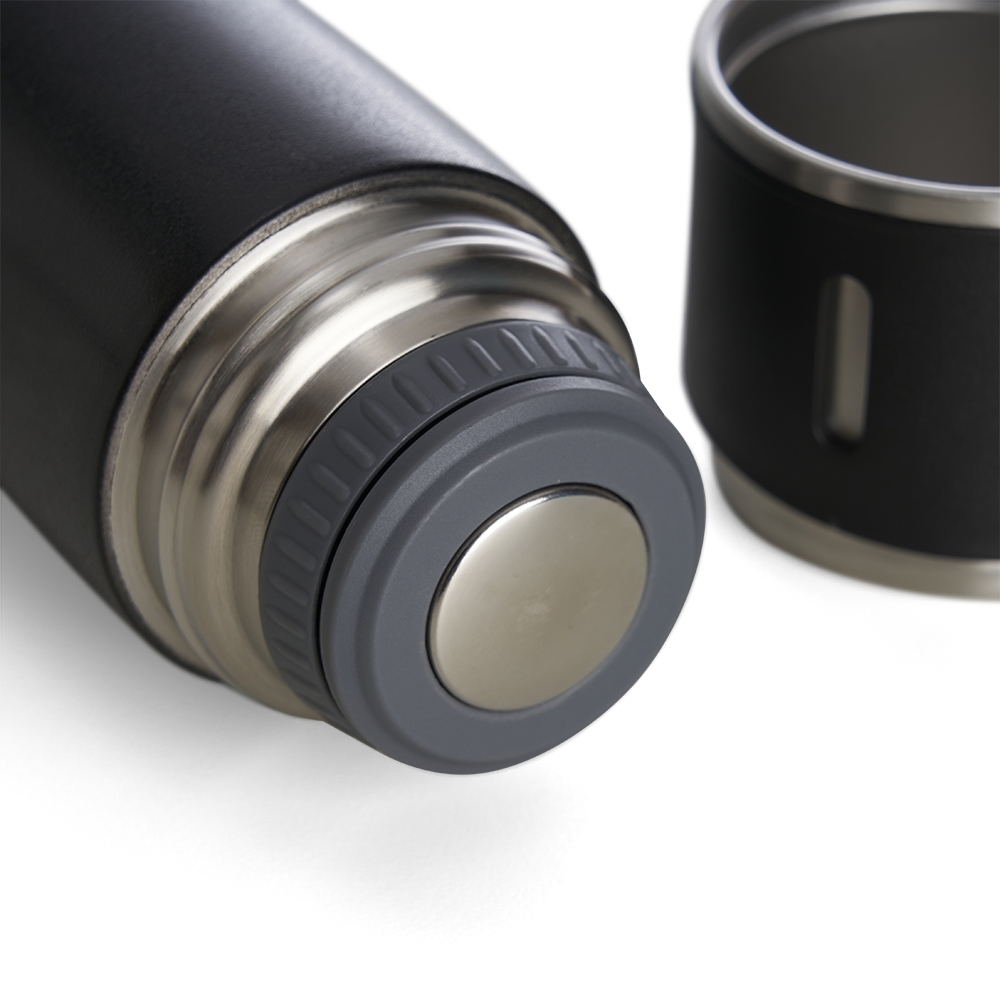 Descrição: Garrafa térmica 450ml em inox com tampa que pode ser utilizada como caneca, tampa interna em plástico resistente (basta um clique para abrir ou fechar), base com borracha antiderrapante.