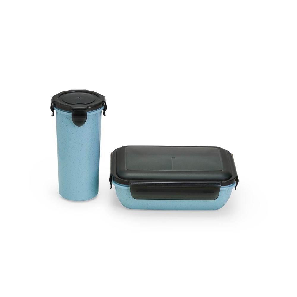 Descrição: Kit com copo salada de 500ml e marmita hermética de 1L com divisórias, garfo e faca feitos em fibra de bambu. A combinação ideal para as refeições do dia a dia. Feitos em PP atóxico e livres de BPA, são totalmente seguros para alimentos. Ambos são equipados com travas de segurança e supervedação, permitindo que leve-os para qualquer lugar sem riscos de vazamentos. O copo possui escala de medição até 500 ml e sua tampa ainda serve como porta copo, enquanto a marmita contém três divisórias internas que mantêm os sabores separados e controlam as porções, facilitando a montagem de uma dieta equilibrada.