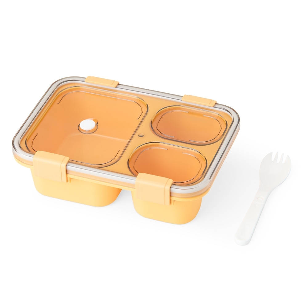 Descrição: Marmita hermética de 800ml com divisórias e garfo, a solução ideal para as refeições do dia a dia. Feita em PP atóxico e livre de BPA, ela é totalmente segura para alimentos. Equipada com travas de segurança e vedação eficaz, leve-a para qualquer lugar sem riscos de vazamentos. Suas três divisórias internas mantém os sabores separados e controlam as porções, facilitando a montagem de uma dieta equilibrada.