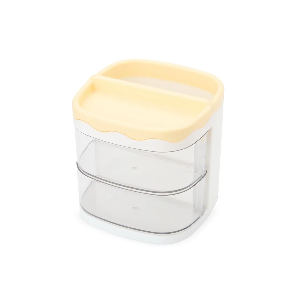 Descrição: Deixe o espaço da mesa de estudo ou trabalho mais organizado, bonito e prático! Feito em plástico e acrílico, o organizador combina funcionalidade e um toque de beleza. Conta com 2 compartimentos versáteis para lápis, pincéis de maquiagem, canetinhas coloridas ou o que mais desejar, além de um espaço raso para itens como borracha e outros acessórios. Também possui 2 gavetas para objetos diversos, como cola, clipes, mini grampeadores e muito mais. Com este organizador de mesa, é possível usar a criatividade para organizar e decorar.