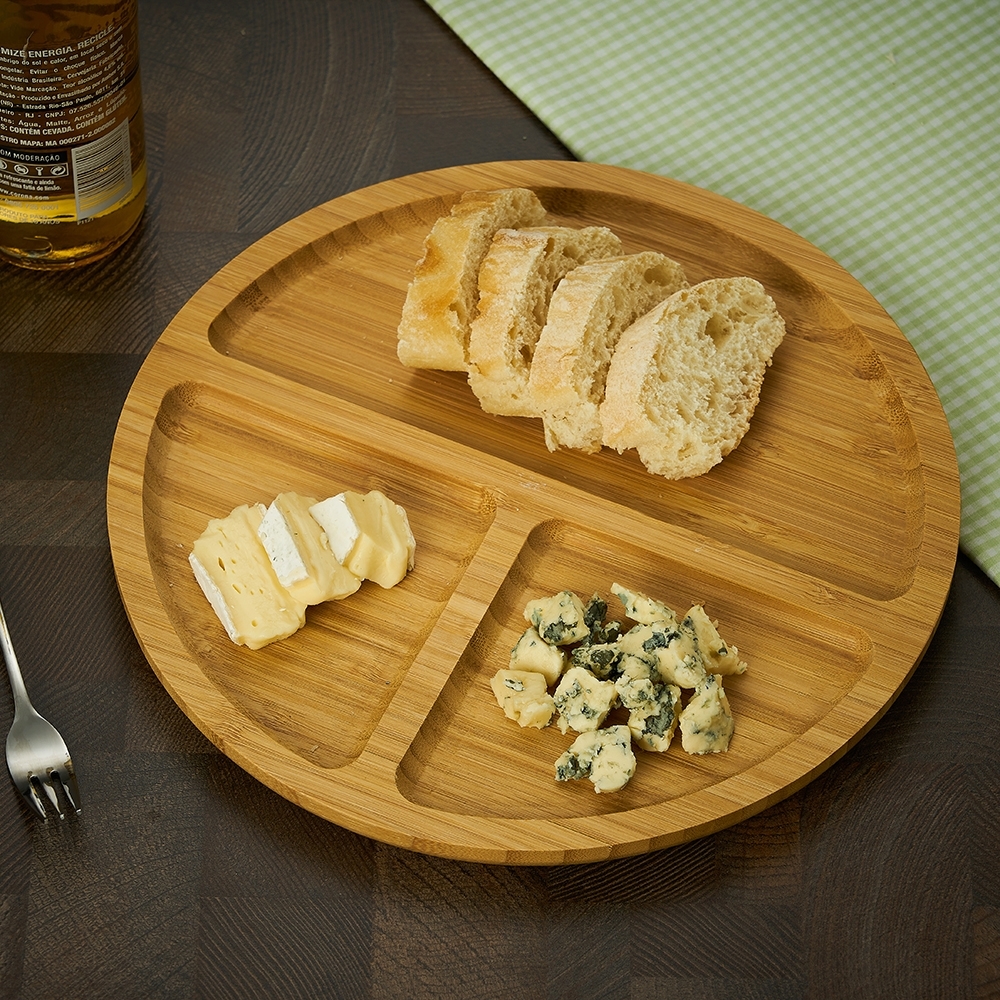 Descrição: Petisqueira de bambu média com 3 divisórias.