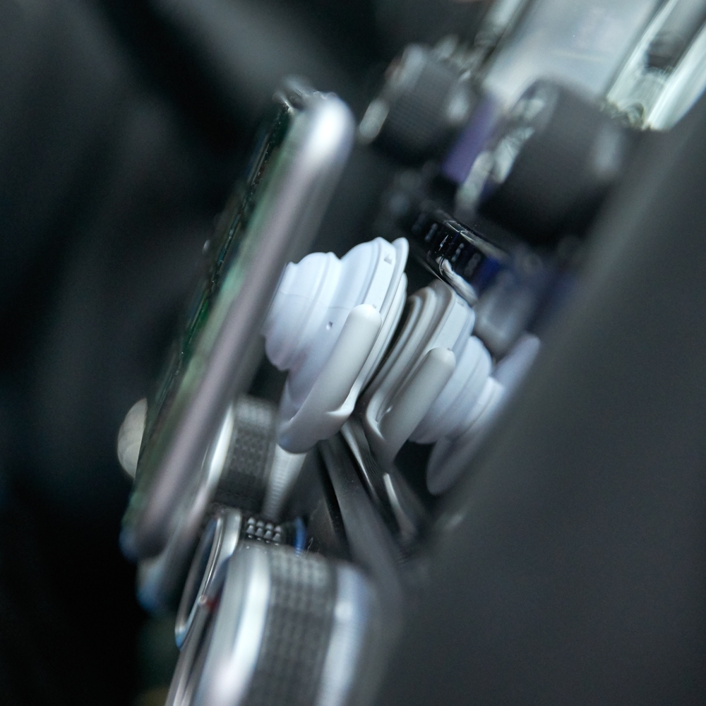 Tamanho total aproximado  (CxL):  Suporte 3,9 cm x 3,9 cm x 2,3 cm – Base 4,8 cm x 3,9 cm x 0,9 cm