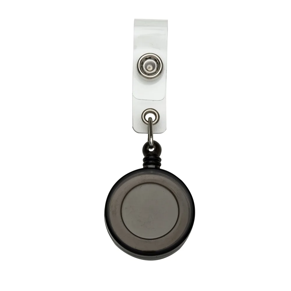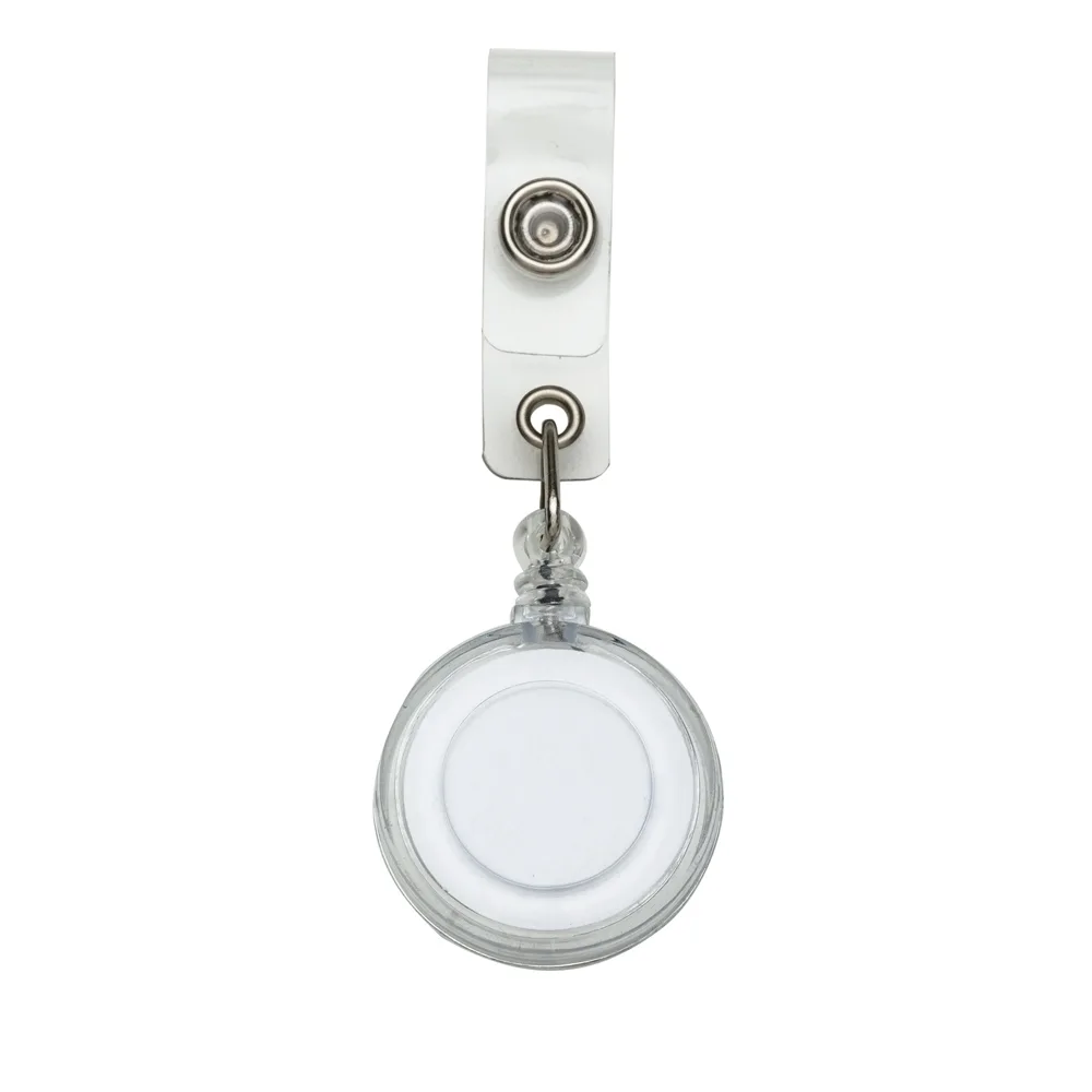 Descrição: Porta crachá retrátil plástico, cores leitosas e translúcidas. Roller clip possui sistema extensor em nylon que após puxar é recolhido automaticamente. Possui presilha metálica na parte traseira e alça plástica com botão.