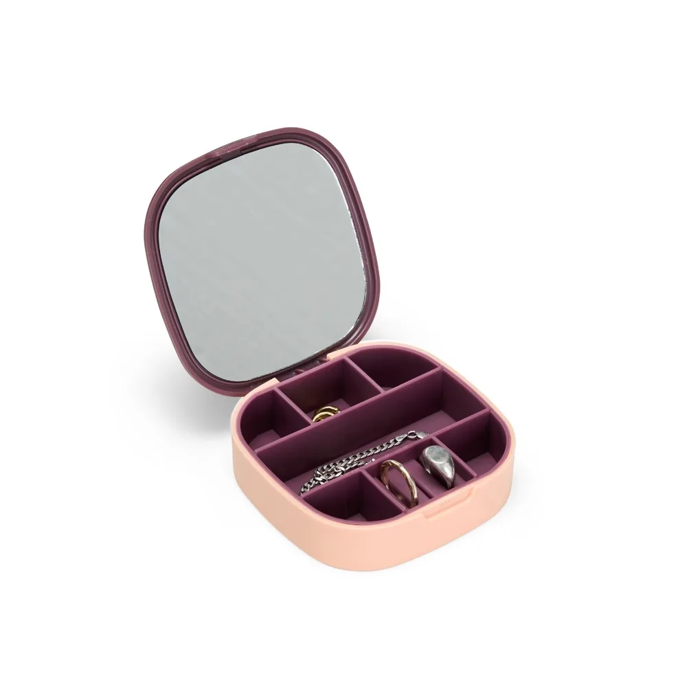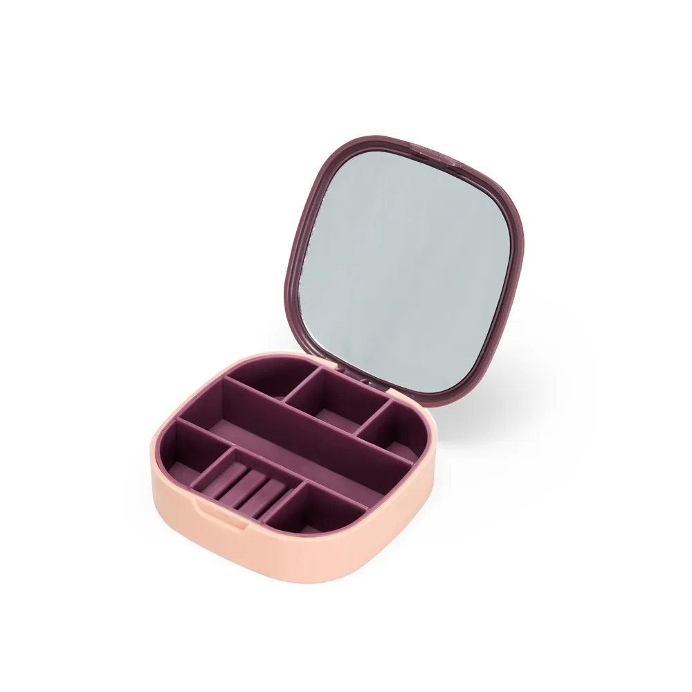 Descrição: Nosso Porta-jóias organiza seus acessórios de forma prática e compacta. Produzido em plástico, é a escolha ideal para manter anéis, brincos, batom e pulseiras sempre acessíveis. Com 7 compartimentos estratégicos para guardar tudo, feitos em material macio e emborrachado, removíveis para facilitar a limpeza, ele também conta com um espelho na tampa, facilitando na hora de montar looks com as jóias. Perfeito para quem valoriza organização, autocuidado e praticidade no dia a dia.
