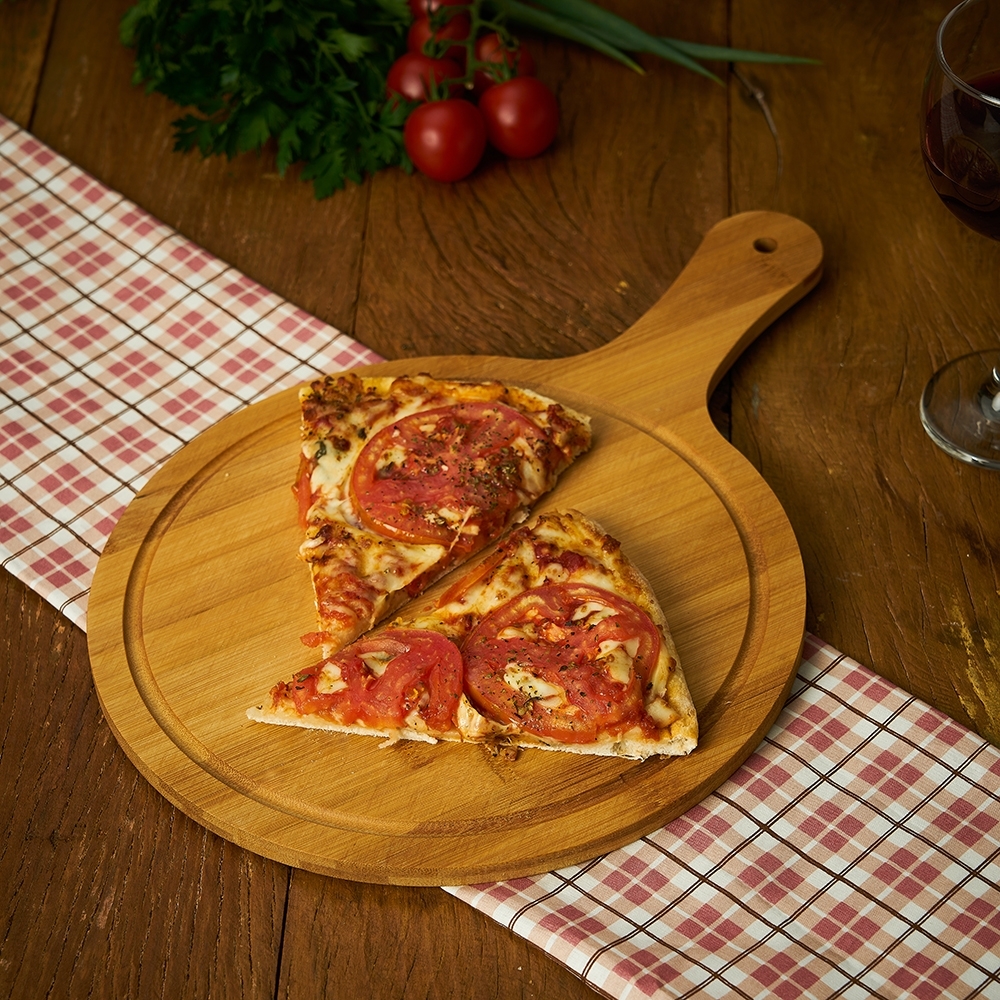 Descrição: Tábua de bambu grande com canaleta e cabo.