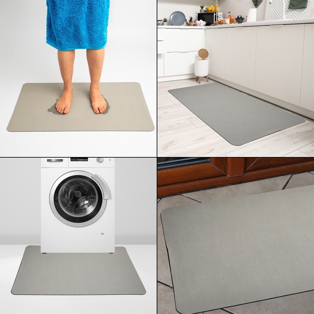 Descrição: Secagem rápida e aderência antiderrapante! Nosso tapete ecológico é a solução ideal para acabar com o piso molhado, seja após o banho ou em outras áreas como cozinha, lavanderia e até mesmo entradas. Feito com lama de diatomáceas, ele absorve rapidamente a água e retorna ao seu estado natural em poucos minutos. Produzido com materiais naturais, o tapete oferece propriedades antibacterianas e antimofo, além de uma base antiderrapante que garante total segurança no uso.