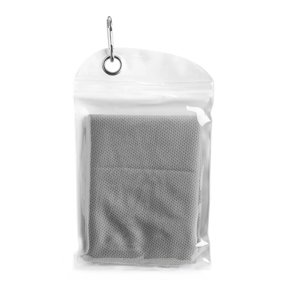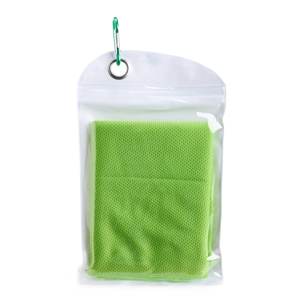 Descrição: Uma toalha prática ideal para aliviar o calor durante atividades físicas em qualquer lugar. Seu uso é simples: basta molhar a toalha, torcer levemente para remover o excesso de água e pronto, você terá uma tolha macia e refrescante para levar ao pescoço e diminuir a sensação desconfortável de calor enquanto ela estiver molhada. A toalha vem em uma embalagem de PVC compacta com um mosquetão para ser facilmente transportada. Precaução de uso: lavar à mão com água fria e sabão neutro.